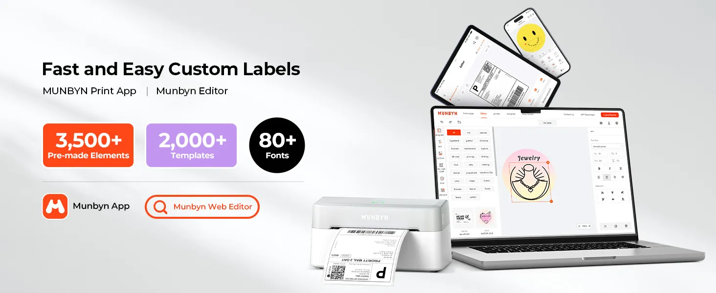 With driver-free Bluetooth and USB setup, the 403B works seamlessly with FedEx, UPS, USPS, Amazon, Shopify, Etsy, and eBay. Start printing within minutes using the Munbyn Print app or Munbyn Editor, ensuring a smooth and stress-free experience.