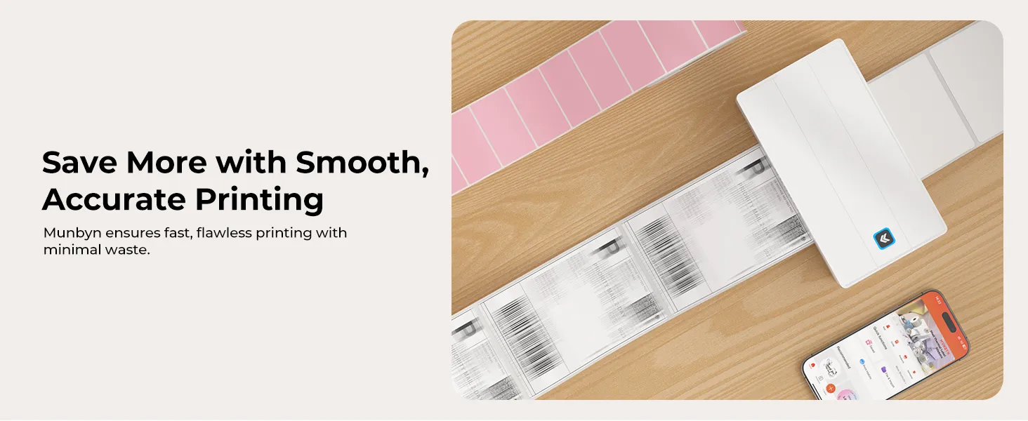 MUNBYN 130B is a portable, versatile thermal label printer tailored for the consumer and small business market. Weighing only 2.3 lbs, it combines 203dpi high-resolution output with ultra-fast 180mm/s printing, ensuring efficiency for everyday shipping and labeling. Dual connectivity with Bluetooth and USB supports iOS, Android, Windows, and macOS, while compatibility with Amazon, eBay, Shopify, UPS, and more ensures wide market appeal.Partner with MUNBYN for bulk supply, reliable quality, and dedicated after-sales support to strengthen your distribution opportunities.